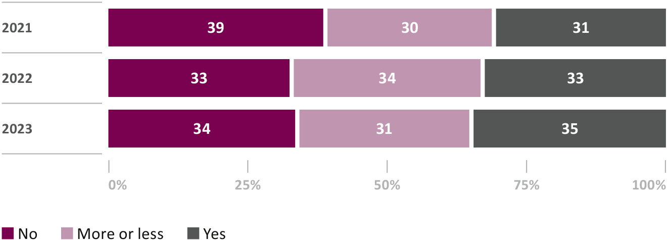 This is why there is no outcry, despite the fact that a considerable portion of retirement income is currently being redistributed from the employed to pensioners due to an excessively high conversion rate. If you account for all respondents, skepticism of this unconventional redistribution has decreased in comparison to previous years: despite ongoing debate about pension reform, only a third indicate that they are well informed about the redistribution. Of the respondents who were informed about this issue, about half of them previously assessed this redistribution as unfair. For the current survey, this figure was only 43 percent. At first then, only a minority has a fundamental problem with the redistribution of pension income from the employed to pensioners. A principle of the 2nd pillar is being contravened here, however, namely that each individual saves for their own pension. "This is in keeping with a general trend: whether state Covid-related subsidies or interventions in the financial center – the state is increasingly being seen as an institution that can provide financial security for everything," comments Michael Hermann.