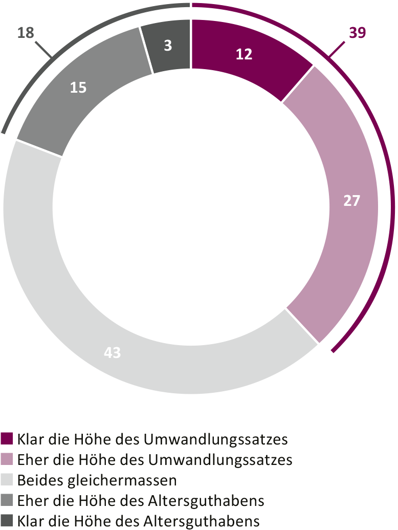 Although occupational retirement provision is a vital part of a person's income after retirement, as ever, many people in Switzerland give little thought to their savings in the 2nd pillar. The latest edition of the "Fairplay" study clearly shows how much the statutory conversion rate has become a symbol for the total pension amount within the 2nd pillar: 2 out of 5 (39 percent) of working respondents thought that the conversion rate was the most decisive factor in determining their pension amount after retirement. Only 1 out of 5 surveyed thought that their retirement savings were the most important factor. For the rest, both factors were equally relevant. "For many of those surveyed, the annual pension distribution rate was more important than building up pension capital: instead of increasing the size of the cake, they were more concerned with increasing the size of the slices that are distributed each year," summarizes Michael Hermann, Managing Director at the Sotomo research institute. However, whether the cake is cookie or pie-sized hardly matters in the discussion. Even younger survey respondents thought more like pensioners here than savers.